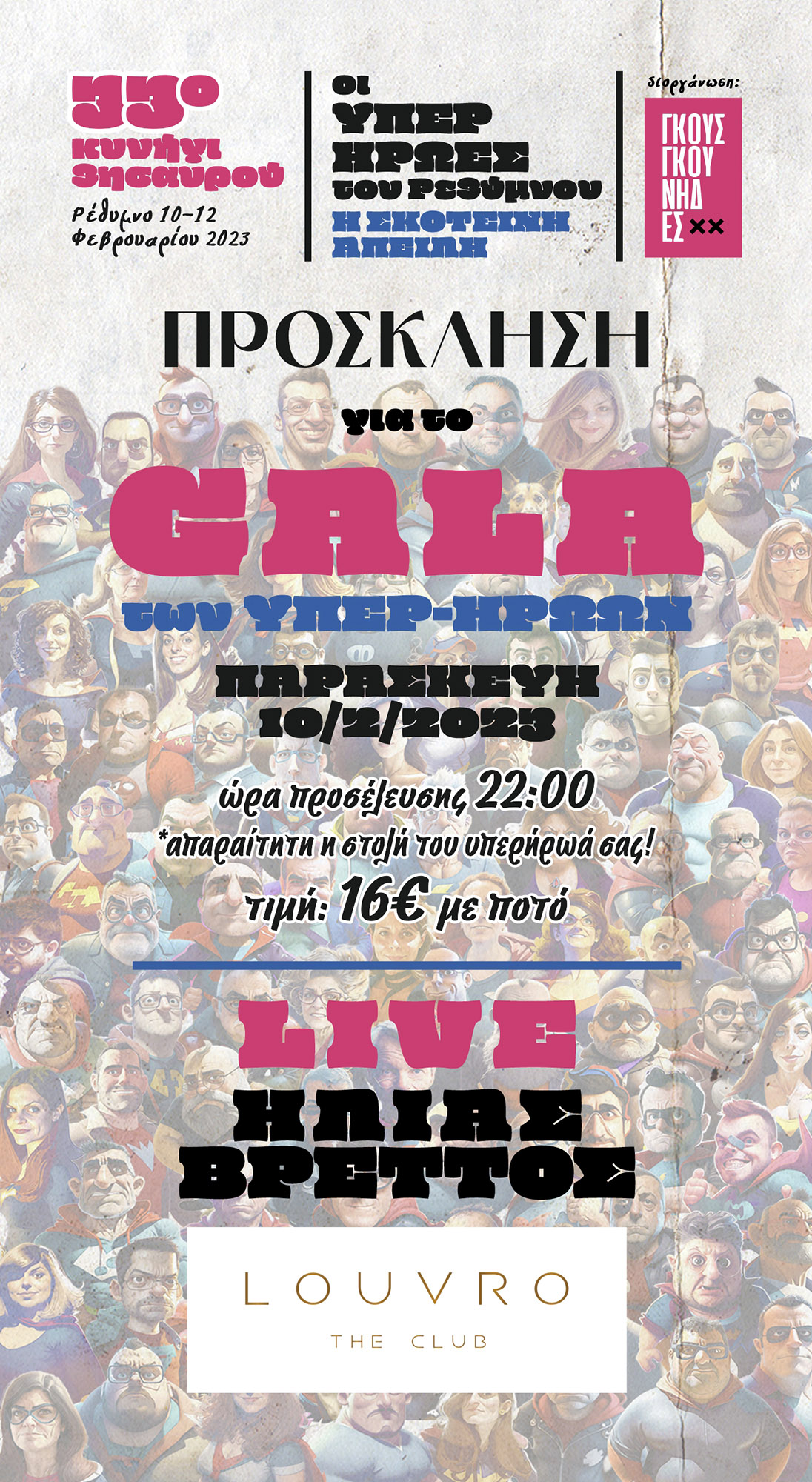 Είστε καλεσμένοι στο γκαλά των ΥΠΕΡ-ΗΡΩΩΝ του Ρεθύμνου! Εκεί που θα παρουσιάσετε τη στολή του υπερήρωά σας και θα μας δείξετε τις υπερδυνάμεις σας! Εκεί που θα γίνετε επίσημα μέλη της ομάδας G-SPOT! Να είστε όλοι εκεί!